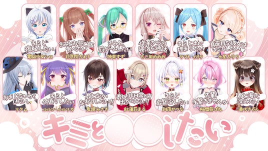 「.LIVE」より8名、「ぶいぱい」より5名の合計13名が、まるで各VTuberと一緒にいるような気持ちにさせてくれる『キミと〇〇したい』ボイスの販売を開始しました。今回限定の貴重なシチュエーションボイスが勢揃い!各VTuberが考案したシチュエーションをぜひお楽しみください!