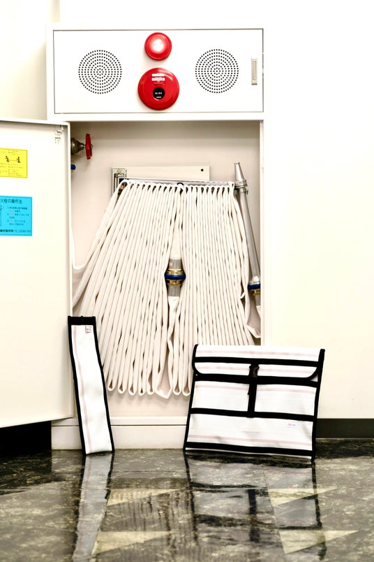 商品開発のきっかけは「ビルや公共施設などに備え付けられた消防ホースの9割が一度も使われることなく、使用期限を終え、新品同然のまま廃棄されている」ことを知ったこと。