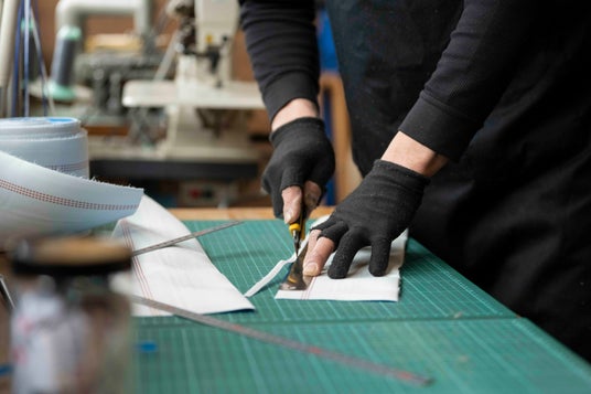 デザイナー本人が手作業で裁断