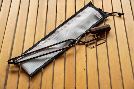 長さ46cmのファイヤーギアケースは、なかなかマッチするケースが見つからない、火箸や火吹き棒、トングを入れるために開発した自慢の一品です。