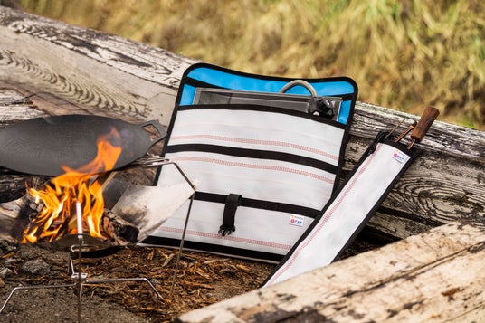 ■「水に強く、燃え上がらない」タフな消防ホースの特性を活かした「唯一無二のキャンプギア」「水に強く、燃え上がらない」タフな消防ホースの特性を活かした、唯一無二のキャンプギア「フラットバーナー・マルチグリドルケース」と「ファイヤーギアケース」。