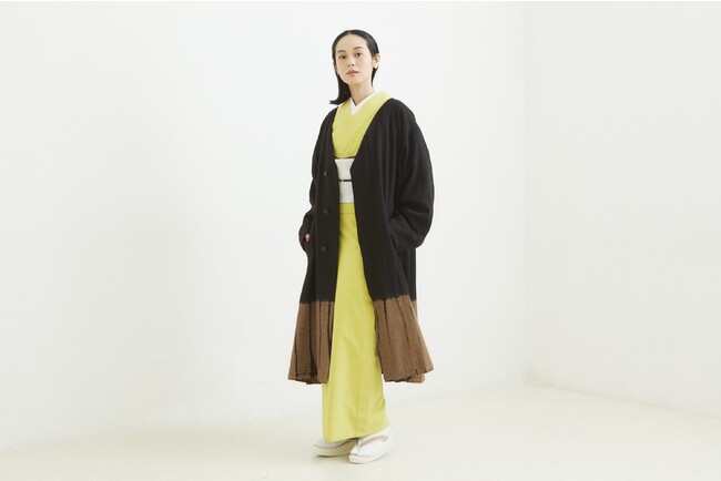 ウール素材のコート地に絞り加工を施した和洋兼用のオリジナルコートを展開します。