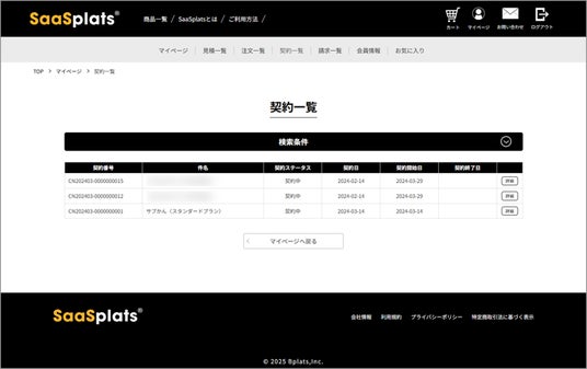 SaaSplatsでは、ストア内で購入/申込をひとまとめに行えるだけでなく、マイページですべての契約情報や利用状況が一目で「見える化」されます。