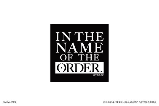 「IN THE NAME OF THE ORDER(オーダーの名の下に)」をデザインしたスタイリッシュなステッカー。