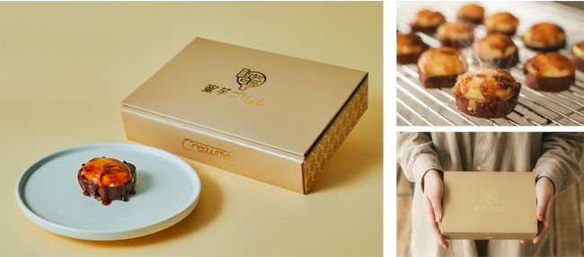 オンライン購入で、全国どちらからでもご自宅で出来立ての味わいを楽しめます Creaimoオンラインストアでは、口に含んだ瞬間とろけるお芋スイーツ「壺芋ブリュレ」「蜜芋ブリュレ」を全国どちらからでもお楽しみいただけます。壺芋ブリュレは、時期に合わせ厳選したさつまいもを一つ一つ丁寧に壺で焼くことでとろとろの焼き芋を実現。そこにたっぷりのカスタードが混ざり合い、より一層口に含んだ瞬間の食感をお楽しみいただけます。蜜芋ブリュレは、ねっとり”濃蜜”な焼き芋に口溶けなめらかなカスタードクリーム、パリッと香ばしいカラメルを一口サイズでお届け。ご自宅に届いたら、付属のシュガーをかけてバーナーでジュワッと炙り、出来立てのキャラメリゼとカスタード、焼き芋の贅沢な味わいをご堪能ください。売り切れ必至となっておりますので、公式LINE*をご登録くださいませ。完売前に販売の通知を受け取ることができます。
