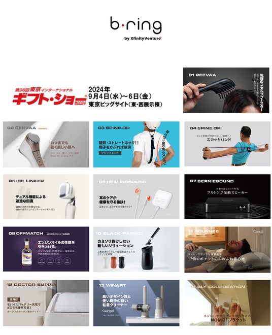 株式会社Xfinity Ventureはこれまでもギフト・ショーで海外の製品を紹介してきた経緯があり、これらの製品も現在日本での販売先を探しています。今回のギフト・ショーではこれらの製品を紹介していますので、ご興味をお持ちの方は是非ブースへお立ち寄りください。多くの方に実物を体験いただく予定です。