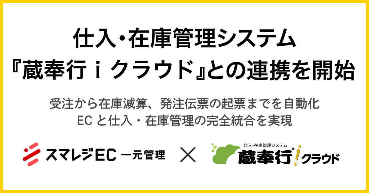 株式会社ネットショップ支援室(本社:東京都港区、代表取締役:竹澤 洋一、以下ネットショップ支援室)が提供する、CRM機能内蔵型EC一元管理システム「スマレジEC・一元管理」は、この度、株式会社オービックビジネスコンサルタント(本社:東京都新宿区、代表取締役社長:和田 成史、以下OBC)が提供する、仕入・在庫管理システム『蔵奉行iクラウド』とのAPI連携を開始しました。
