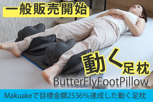 株式会社ロウダンクラウドファンディングで話題沸騰、動く足枕バタフライフットピローがついに市場へ