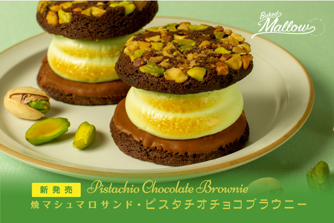 どこを食べてもピスタチオづくしの新作!『焼マシュマロサンド・ピスタチオチョコブラウニー』誕生