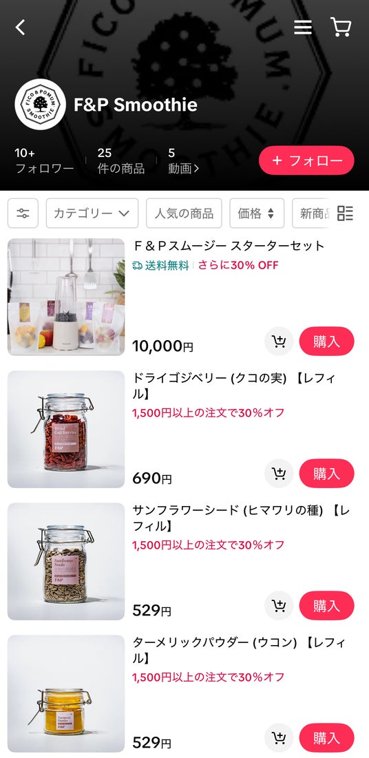 TikTok Shop F&Pスムージー公式アカウント