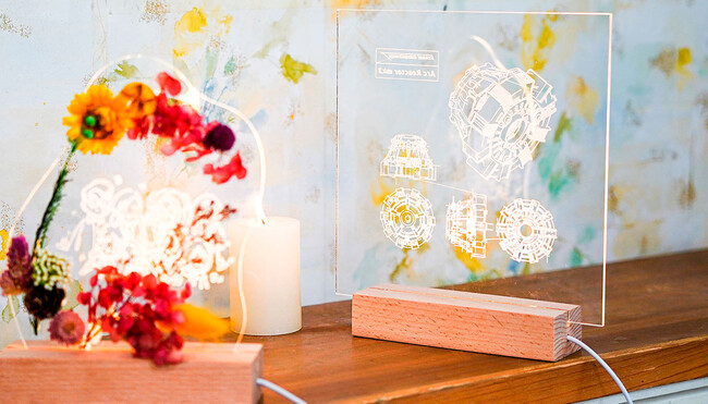 線画モジュールに線画彫刻ペンを差し込めば、アクリル彫刻も作成可能。※線画彫刻にはオプションの「線画モジュール+アクリル彫刻キット」が必要です。