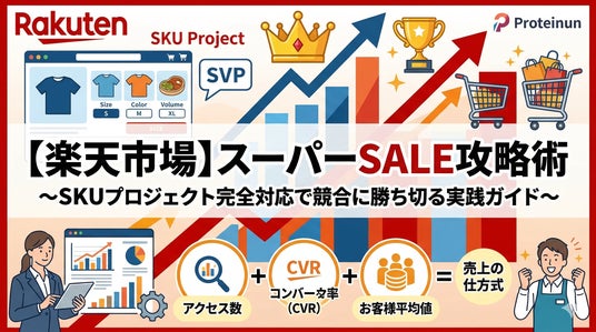株式会社Proteinum楽天市場のスーパーSALE攻略について、SKUプロジェクトの切り口から効果最大化のための体系的な施策内容について調査し、1コンテンツに凝縮しました。