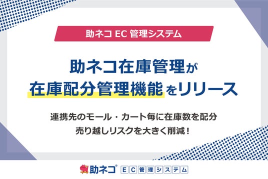 株式会社アクアリーフ(本社:神奈川県平塚市、代表取締役 長谷川 智史)が提供するネットショップ向け業務管理システム「助ネコ(R)EC管理システム(以下、助ネコ)」は、同シリーズの「助ネコ(R)在庫管理」において、連携先のモール・カート毎に在庫数を配分してアップロード可能な「在庫配分管理」機能をリリースしました。