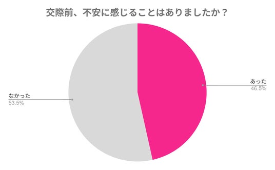 https://www.officegift.jp/「交際前、不安に感じることはありましたか」の設問では、「あった」より「なかった」のほうがやや多いという結果でした。