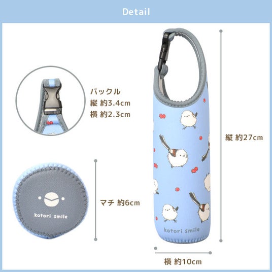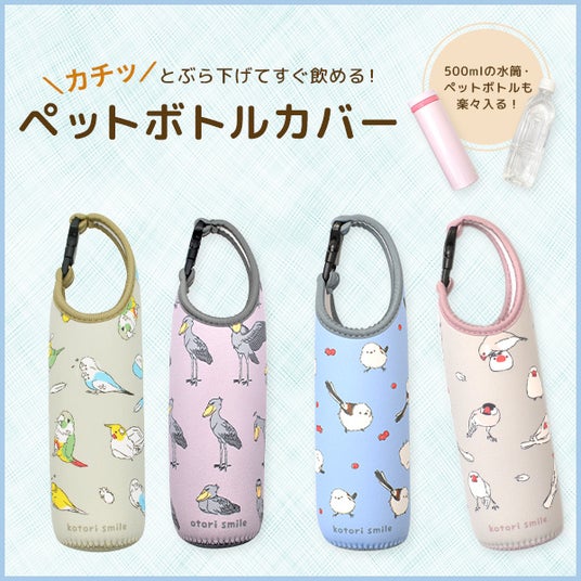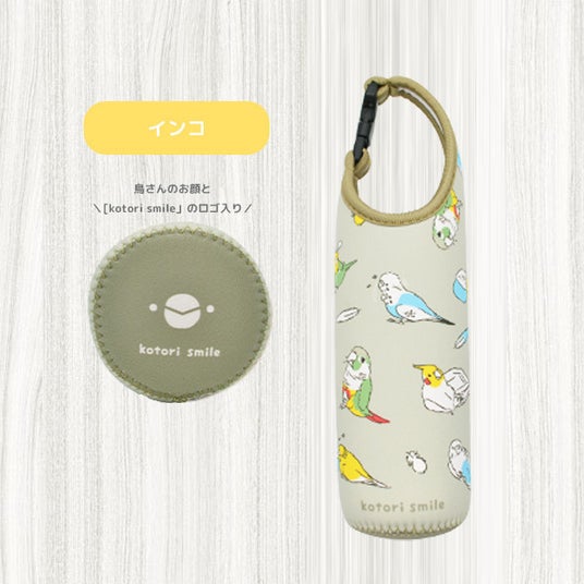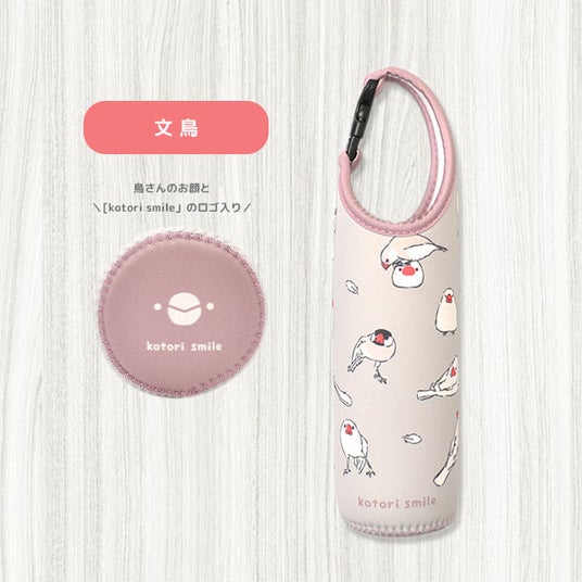 ことりすまいるオリジナル鳥さんのかわいい仕草がデザインされたペットボトルカバー。