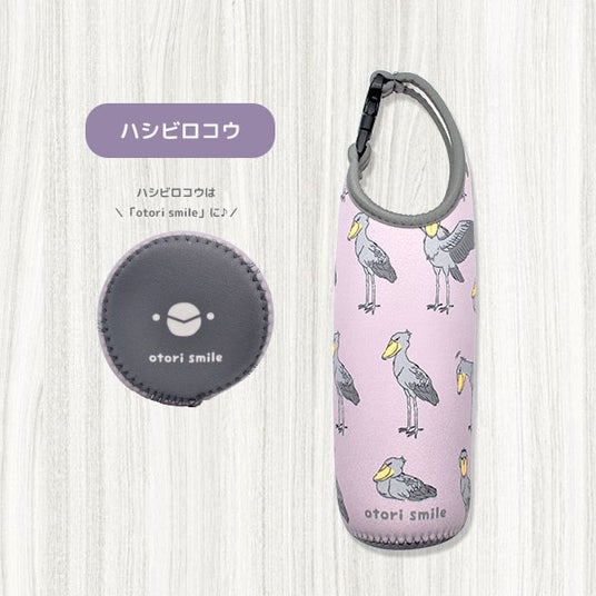 実用性も抜群のペットボトルケースに、新柄「ハシビロコウ」とリニューアル柄「インコ」が登場しました。