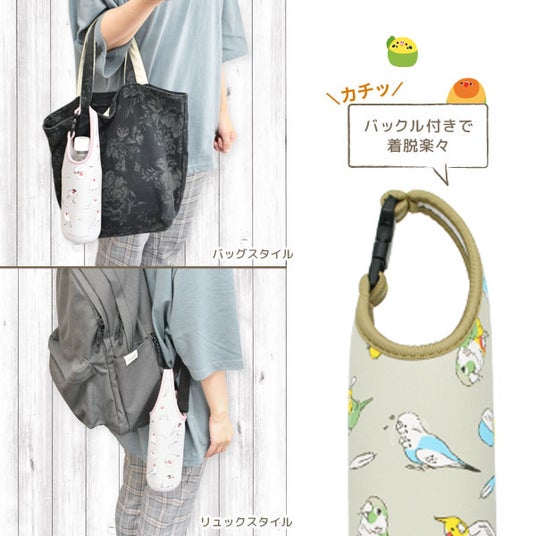 【新商品】ペットボトルカバー¥1,430(税抜¥1,300)■ハシビロコウ 新商品■カラフルインコ 新商品■シマエナガ 再入荷■文鳥