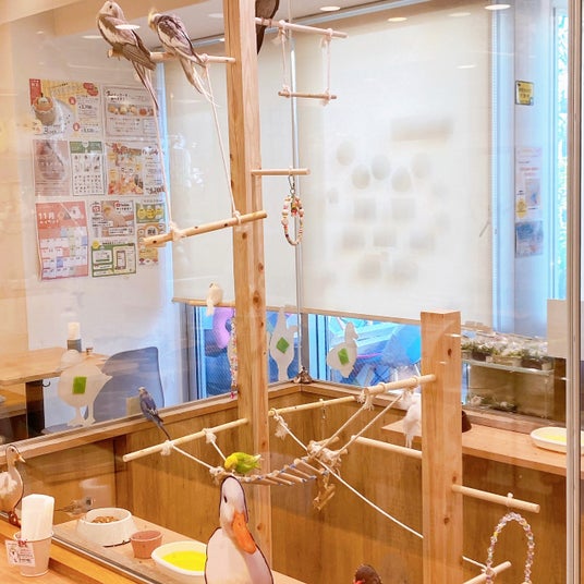 カフェと併設して鳥をモチーフにした雑貨コーナーもあり、品揃え豊富な鳥グッズを販売しております。衛生の都合上、鳥さんとの同伴や、放し飼いはしておりません。