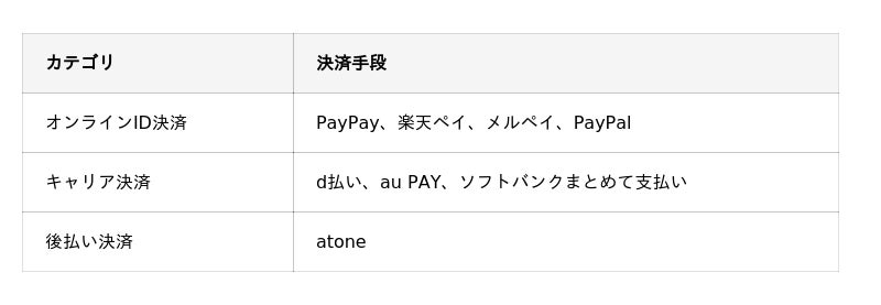 新たに追加される決済手段(計8種類)