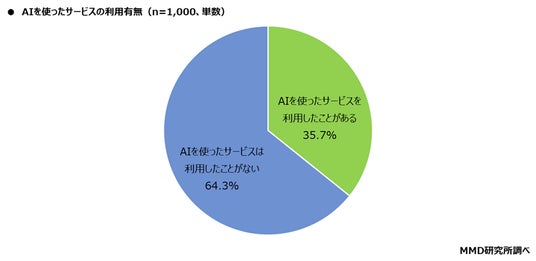 18歳~69歳の男女1,000人を対象に、AIを使ったサービスを利用したことがあるか聞いたところ、「AIを使ったサービスを利用したことがある」は35.7%となった。