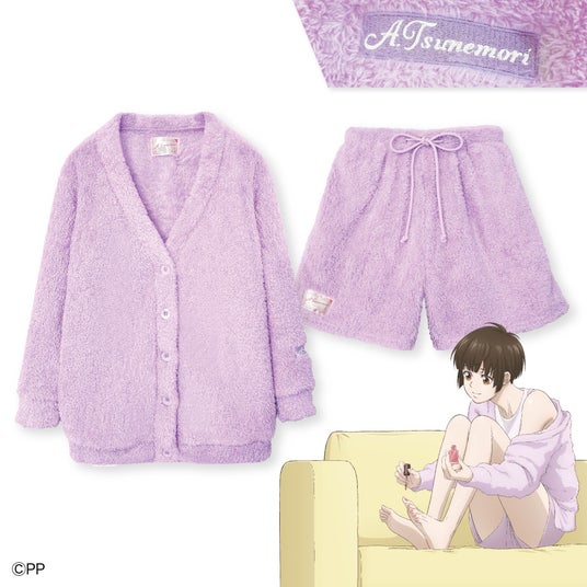 「常守朱」が着用しているルームウェアを再現。ラベンダーピンクの生地に、左袖口の「A.Tsunemori」のホワイトの刺繍がポイント。オリジナルネーム付きです。