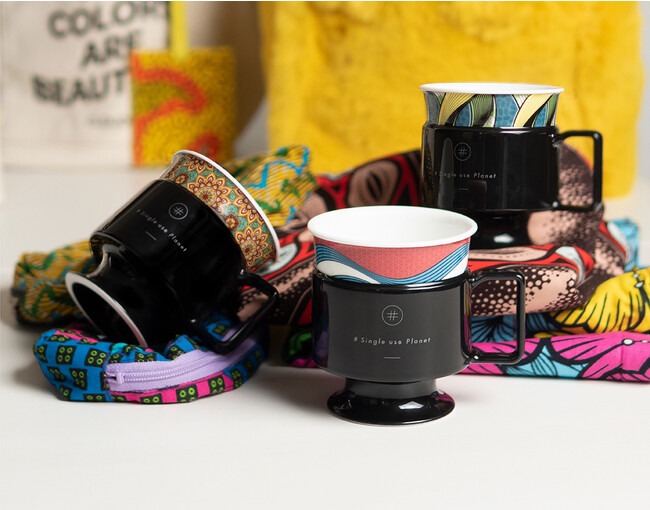 そのアイコンとして生まれたのが、ビジネスシーンなどで昔からなじみ深い使い捨てプラスチック製のコーヒーカップを、軽くて割れにくく長持ちするファインボーンチャイナ製の陶磁器でオマージュしたマグカップです。繰り返し使うことで、地球の環境保護に貢献したいという気持ちが込められています。
