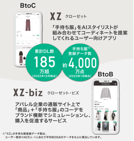 ・事業内容:BtoC向けファッションアプリ「XZ(クローゼット)」、BtoB向けOMOクローゼットSaaS「XZ-biz(クローゼットビズ)」