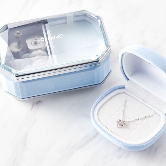 中央で揺れるキュービックジルコニアが動きに合わせてきらめくネックレスに、大切なプレゼントをロマンティックに演出するジュエリーケースをセットにしてお届けします。上質で美しいデザインのジュエリーは、誕生日や記念日のプレゼントに人気です。ジュエリーケースには、お名前はもちろん、記念日などの日付の刻印もおすすめです。