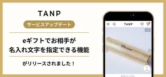 TANP(タンプ)ではギフト専門ECサイトとして、手渡しやお相手に直接配送するギフトだけでなく、オンライン上で気軽に贈ることができるeギフト機能も展開してきました。人とのつながりが変化していく中で、ギフトの渡し方も多様化しています。様々なギフトニーズに応えられるよう、タンプではeギフト機能のリニューアルに取り組んでおります。今回のアップデートでは、受け取ったお相手が、名入れしたい文字や名前を記載できる機能を搭載しました。