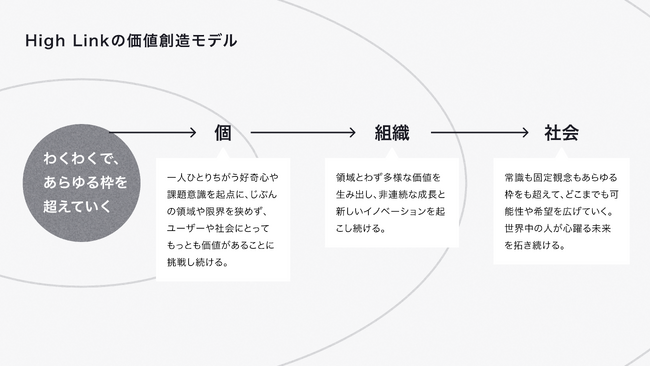 株式会社High Linkは、2023年11月1日に新たな企業理念である「Philosophy・Value」をリニューアルいたしましたので、お知らせいたします。