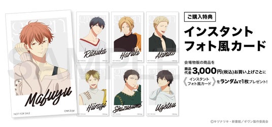 会場物販にて、商品を<商品代金3,000円(税込)お買い上げごと>に《インスタントフォト風カード》をランダムで1枚プレゼント!