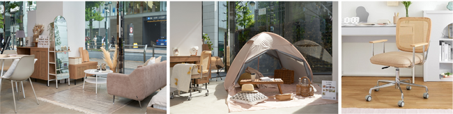 その他にも、韓国インテリアを叶えるアンニュイテイストの「NATURAL」コーデエリアでは、「ラタン調デスクチェア/¥ 19,990(税込)