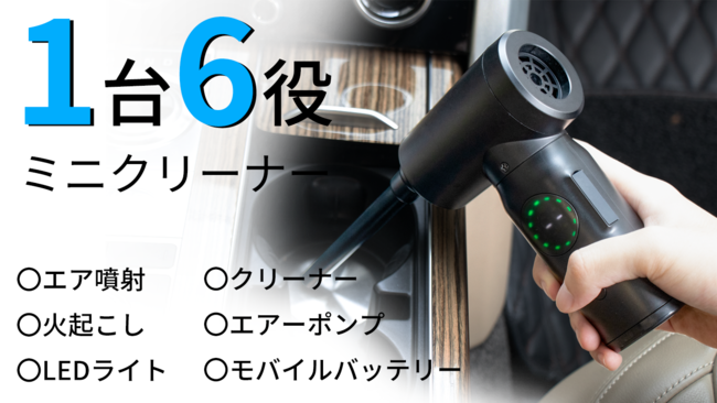 「CF01」とは強力な空気噴射・吸引を誇り、エアーポンプ・火起こし送風機・モバイルバッテリーなど合計6つの機能を持ち、様々なシーンで活躍できるインドア&アウトドア両用のガン型ミニクリーナーです。