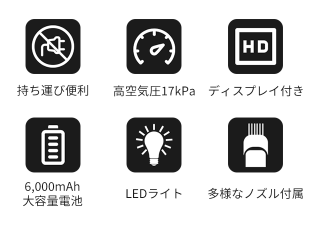 ・ホコリ飛ばしキーボードや窓の隙間、車の席に積もった埃がなかなか取れなくて悩んだことはありませんか。その時は「CF01」の空気噴射機能の出番です!高空気圧で深くまで隠れている汚れも簡単に吹き飛ばすことが可能です。また、ブロワーより手軽で便利に使用できるから、庭の掃除用の道具としても大活躍!