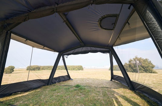 テント全面はメッシュ~フルオープンまで可能です。