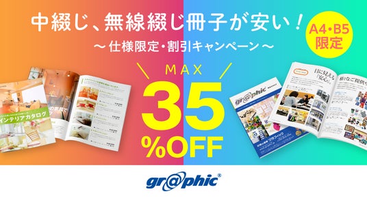 株式会社グラフィック(本社:京都市伏見区、代表取締役社長:西野能央、以下「当社」)はネット印刷事業にて、A4の中綴じ冊子と無線綴じ冊子を最大35%OFFで印刷できるお得なキャンペーンに、B5サイズを新たに追加いたしました。