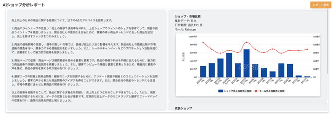 機能概要・自社ショップの推計値と課題を一目で考察できるAIコンシェルジュ機能を搭載