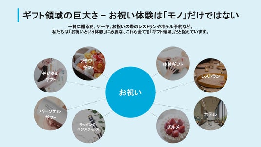 調達した資金はより多くのお客様のもとに「絶対に喜ばれる感動体験」が簡単に届く世界の実現のために充てる予定です。テクノロジーを絶えず進化させること、そしてM&Aを通じて優秀な技術を持つ企業と協力関係を築くことを通して「ギフタイゼーション」を推進していきます。具体的には下記を想定しています。