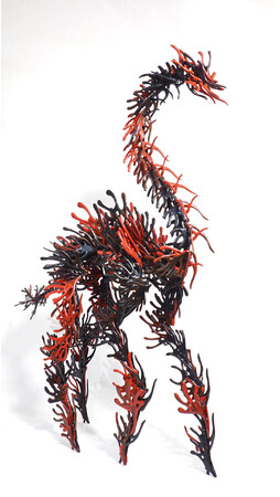そうして架空の生命体のシルエットを追求し、その生命力を表現するうちに、麟太郎は自然そのものが宿す神秘の力に気付き、それに対して畏怖の念を強く抱くようになりました。その結果として、近年の彼の作品には自然とは逆行する消費社会への警告が反映されています。