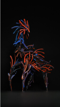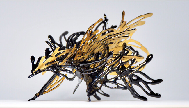 本展「憧想生命」では、そうした架空の生命体を表現した作品のほか、麟太郎の代表的作品の一つである「黄金の茶室」シリーズも展示します。本シリーズは、中身が空洞となった網目状のグルーガンに漆と純金を用いた高級感のある装飾を施すことで、物体の形状が持つ価値と中身の空虚さを対比させています。
