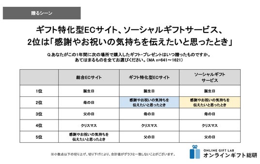 ※本調査結果をご利用いただく際は、【オンラインギフト総研 調べ】とご明記ください。
