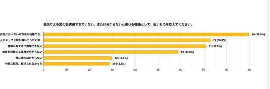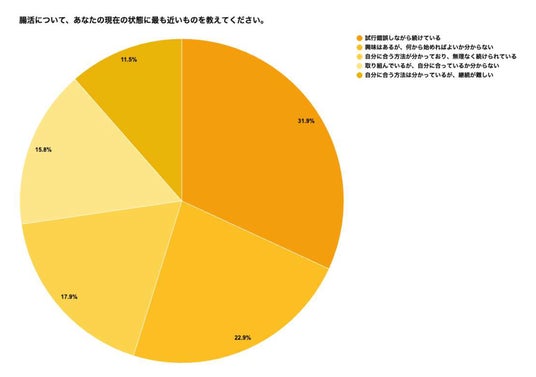 調査では、腸活の実施経験がある人のうち「自分に合う方法がわかっており、無理なく続けられている」と回答した人はわずか17.9%に留まりました。 多くの人が「試行錯誤しながら(31.9%)」、あるいは「興味はあるが何から始めればよいか分からない(22.9%)」といった不安を抱えています。