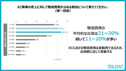 物流費用が21~30%を占める事業者が最も多く、全体の22.4%となっています。