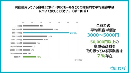 全体では平均顧客単価3000~5000円が最も多く25.6%という結果でした。