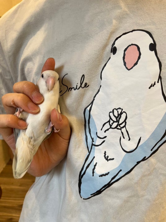 触れ合いスタッフの「大(だい)ちゃん」♪ ※「ことりすまいる」触れ合い専用Tシャツは、店頭だけで販売中♪