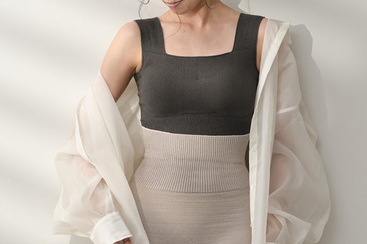敏感になりがちな産前産後のお肌にも優しいオーガニックコットン糸を使用しながら、伸縮性のあるデザインを実現。妊産婦さんに起こりやすい体型・体質の変化にも柔軟に対応し、日常の温活をサポートします。