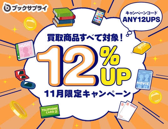 12%UPする特別なキャンペーンを開催いたします。このキャンペーンでは、本・CD・DVD・ブルーレイ・ゲームなどを通常よりお得に売却できるため、年末に向けて整理する絶好のタイミングです。