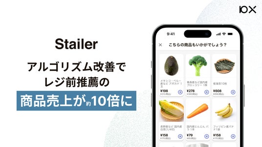 株式会社10X(本社:東京都中央区、代表取締役CEO 矢本 真丈、以下10X)は、同社が提供する小売ECプラットフォーム「Stailer(ステイラー)」を利用する小売事業者向けに、AIが決済完了前に商品をおすすめする「レジ前推薦機能」のアルゴリズム改善を実施し、レジ前推薦機能での商品売上が約10倍になるという効果(※1)が出ました。プラットフォームとしてさらなるお客様体験の向上を目指します