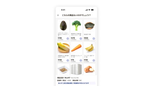 ネットスーパー・ネットドラッグストアにおいて、購入完了直前に”ついで買い”、”合わせ買い”、”買い忘れ防止”を促進する機能です。ネットスーパー・ネットドラッグストアのレジ前で購入されやすい商品をAIが自動的に推薦するため、小売事業者が商品選定に手間をかけることなくお客様に最適な商品が提案されます。Stailerでは2022年12月より本機能を提供しております