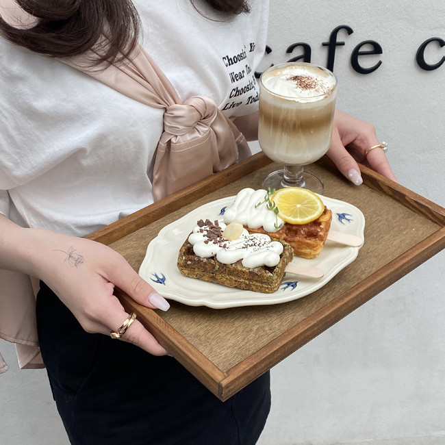 ワッフルの上にアイスや生クリームをトッピングすることでカフェらしさがUP。